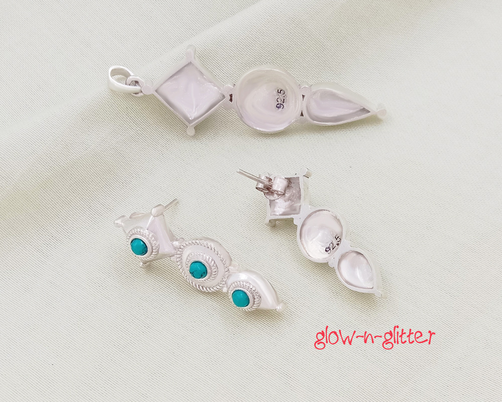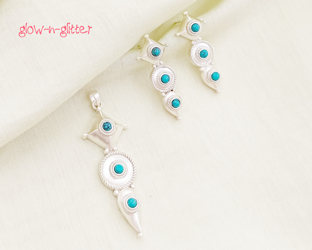 STERLING SILVER & TURQUOISE TRIBAL PENDANT EARRING SET