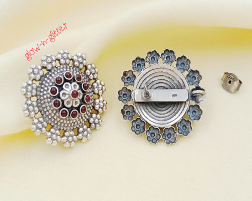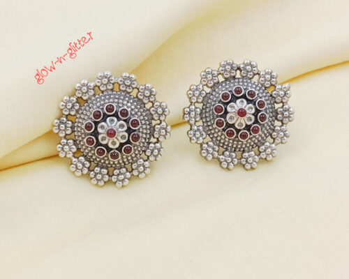 • STERLING SILVER FLOWER RED DANA STUD EARRINGS
