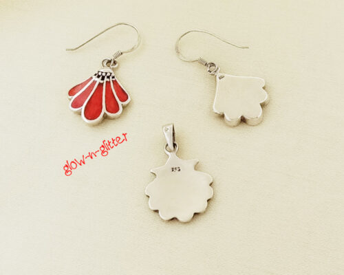 • STERLING SILVER & CORAL PENDANT EARRING SET