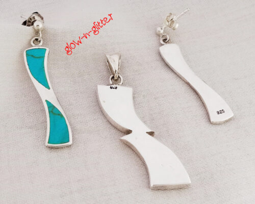 • STERLING SILVER & TURQUOISE WAVE PENDANT EARRING SET