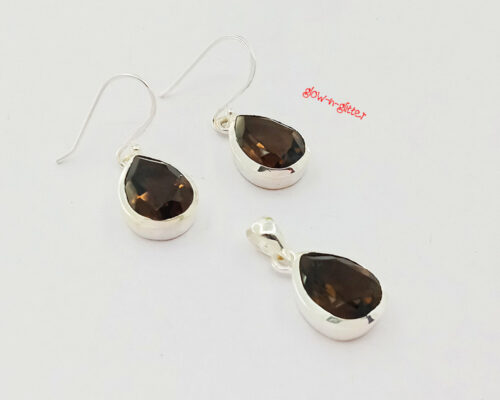 • STERLING SILVER & SMOKY TOPAZ PENDANT EARRING SET