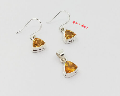 • STERLING SILVER & CITRINE PENDANT EARRING SET