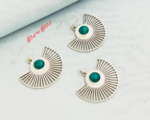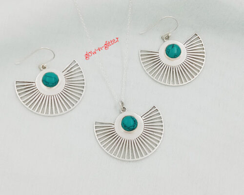 • STERLING SILVER & TURQUOISE RAYS PENDANT EARRING SET