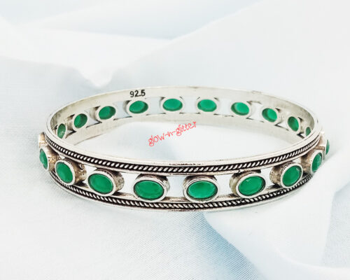 • STERLING SILVER OVAL GREEN ONYX BANGLE