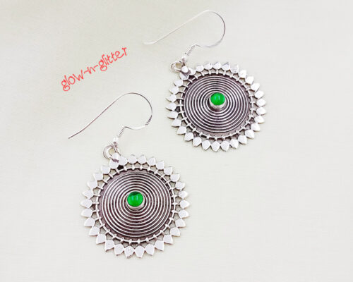 • STERLING SILVER GREEN ONYX CHAKRA EARRING