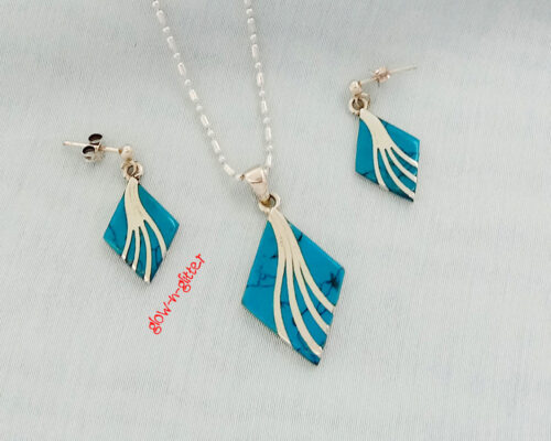 • STERLING SILVER TURQUOISE PENDANT EARRING SET