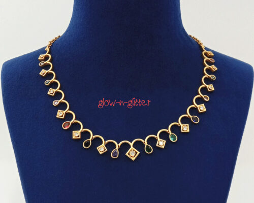 • STERLING SILVER GREEN KUNDAN NECKPIECE