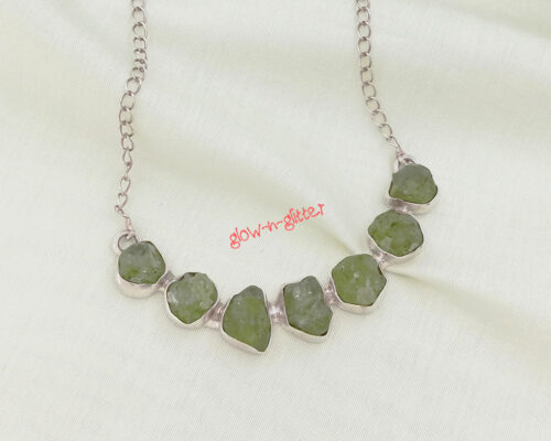 • STERLING SILVER & RAW PERIDOT NECKLACE