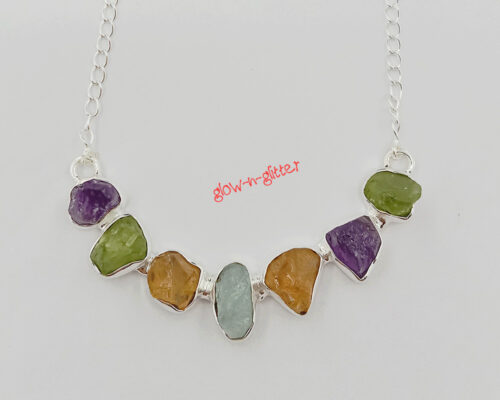 • STERLING SILVER & SEMI PRECIOUS RAW STONE NECKLACE