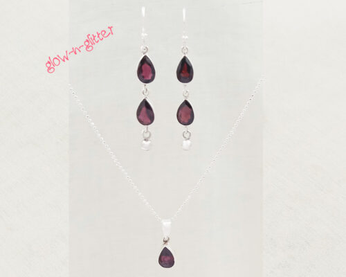 • STERLING SILVER GARNET DROP PENDANT EARRING SET