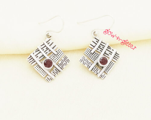 • STERLING SILVER GARNET WEAVE EARRINGS