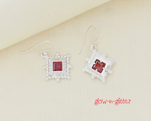 • STERLING SILVER & GARNET NUGGET EARRINGS