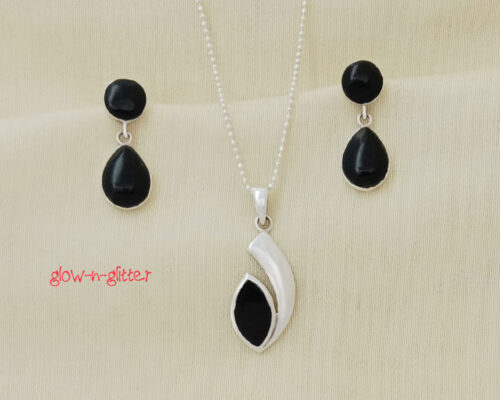 • STERLING SILVER & ONYX PENDANT EARRING SET