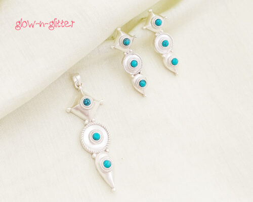 • STERLING SILVER & TURQUOISE TRIBAL PENDANT EARRING SET