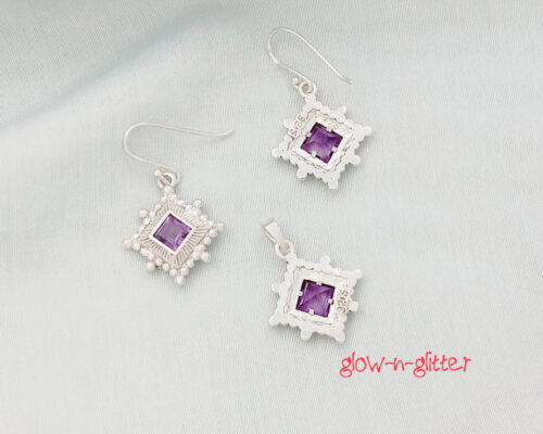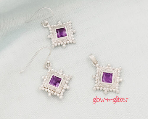 • STERLING SILVER & AMETHYST PENDANT EARRING NUGGET SET