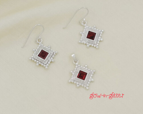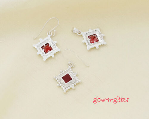 • STERLING SILVER & GARNET PENDANT EARRING NUGGET SET