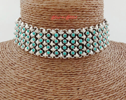 • STERLING SILVER FOUR LINE TURQUOISE CHOKER NECKLACE