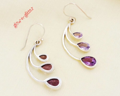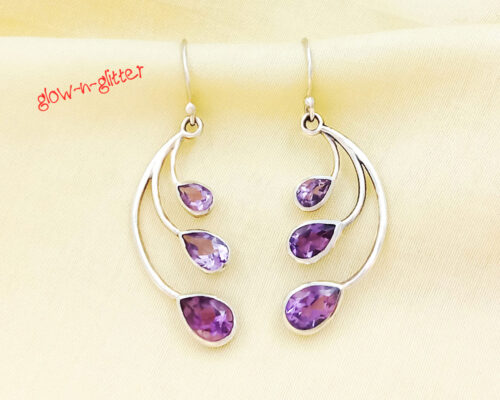 • STERLING SILVER AMETHYST RAINDROP EARRINGS